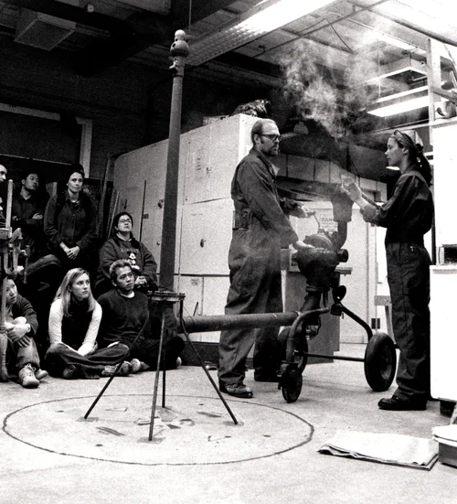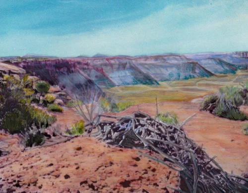 It began as a flurry of lures in mid-October. Small leaflets announcing 100 Messages Sent By a Crow, appeared one day scattered on hallway walls and clustered on the interior doors or the University of Nevada Art Department. Printed on heavy, sand-colored Canson drawing paper in rich, black ink, they had a retro, hand-lettered look and featured delicate drawings of either a weathervane pointing south-east, a partially stripped ear of corn, a country ham, or a short branch cut from a leafy tree, symbols of treasures such as a crow might fancy: seeds, wind and sky, or that a hungry, weary, dreaming man might long for: sustenance and home.